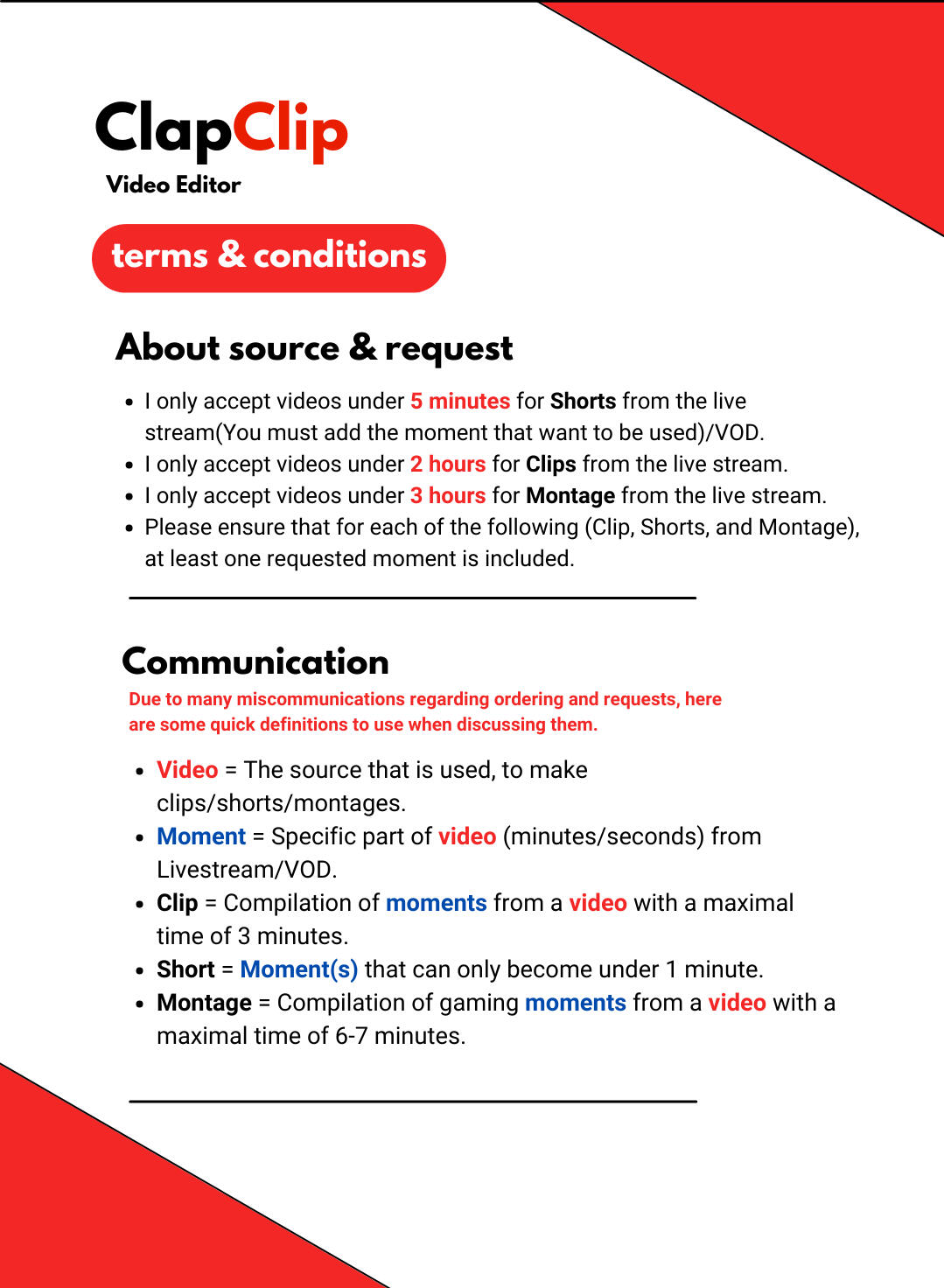 Check out my social media for my personally edited videos on my main channel and clips on my secondary channel.